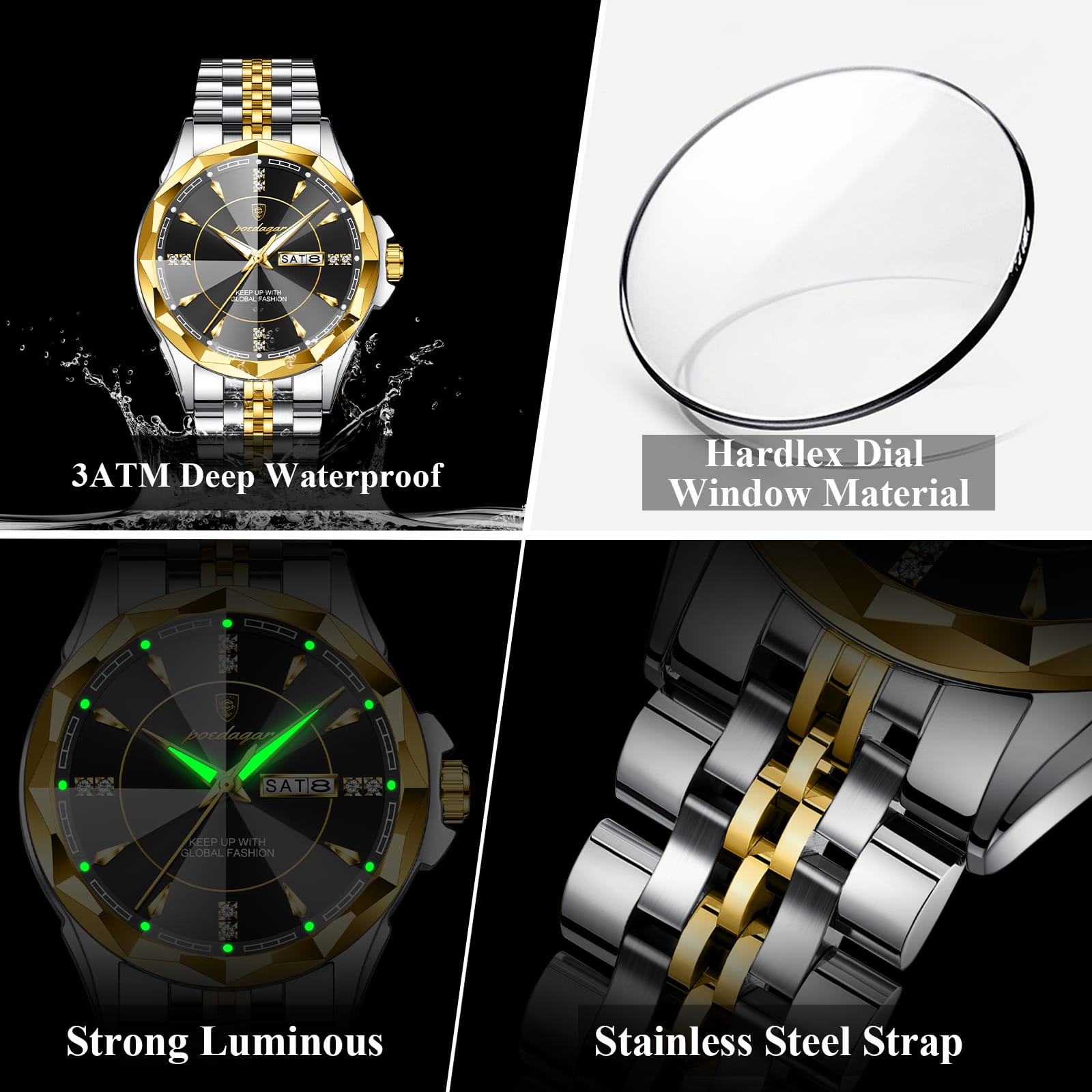 Durability: Water-resistant up to 3 BAR (30M), protecting against splashes and rain; fitted with an upgraded Hardlex dial window for superior scratch resistance.